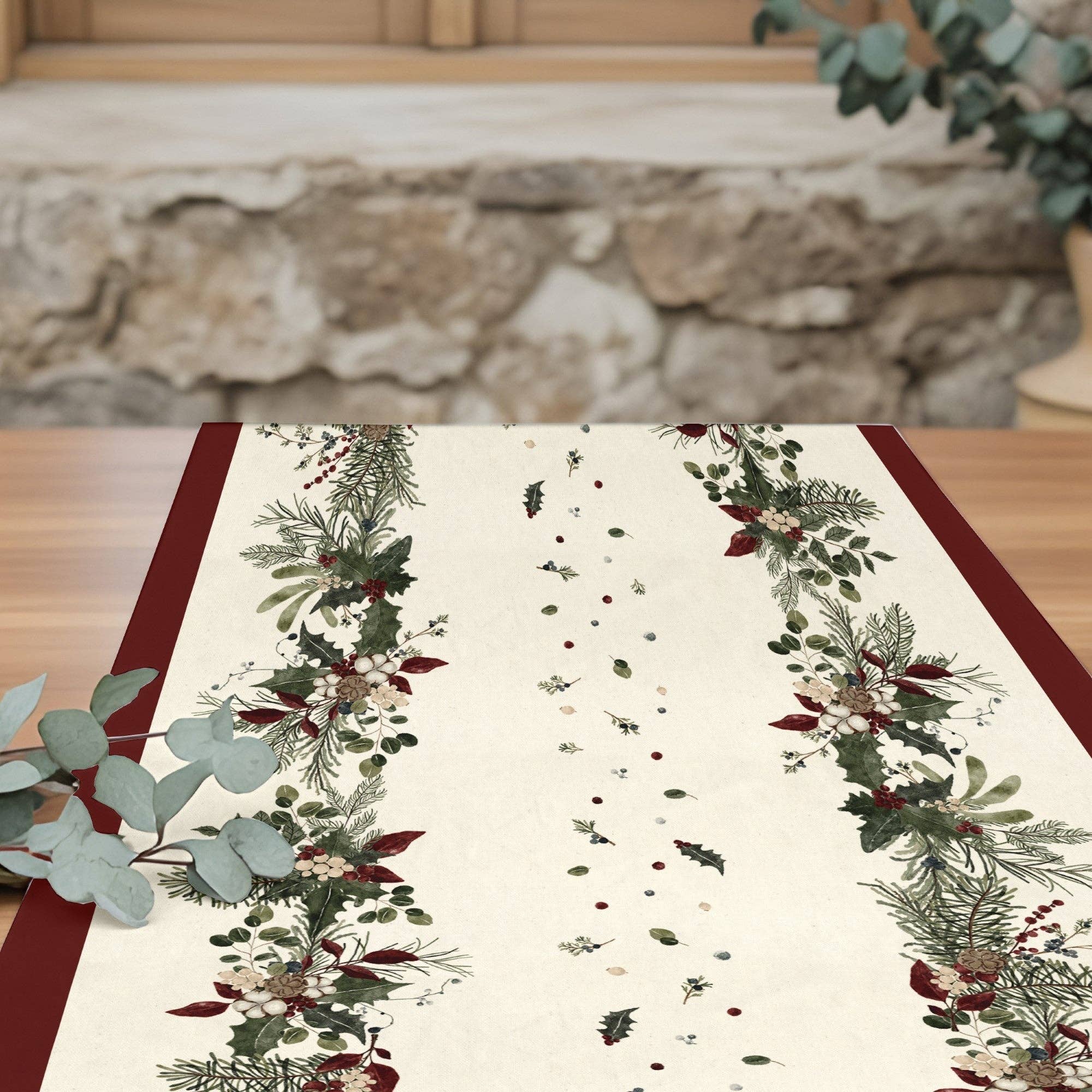 There’s something special about preparing your home for the festive season. This Mistletoe Christmas table runner adds that gentle touch of seasonal warmth, bringing with it a quiet sense of tradition. Printed with delicate wintry greenery, berries, and mistletoe, it transforms even the simplest meal into a special occasion.