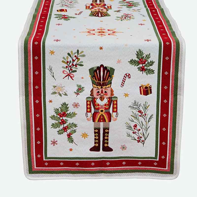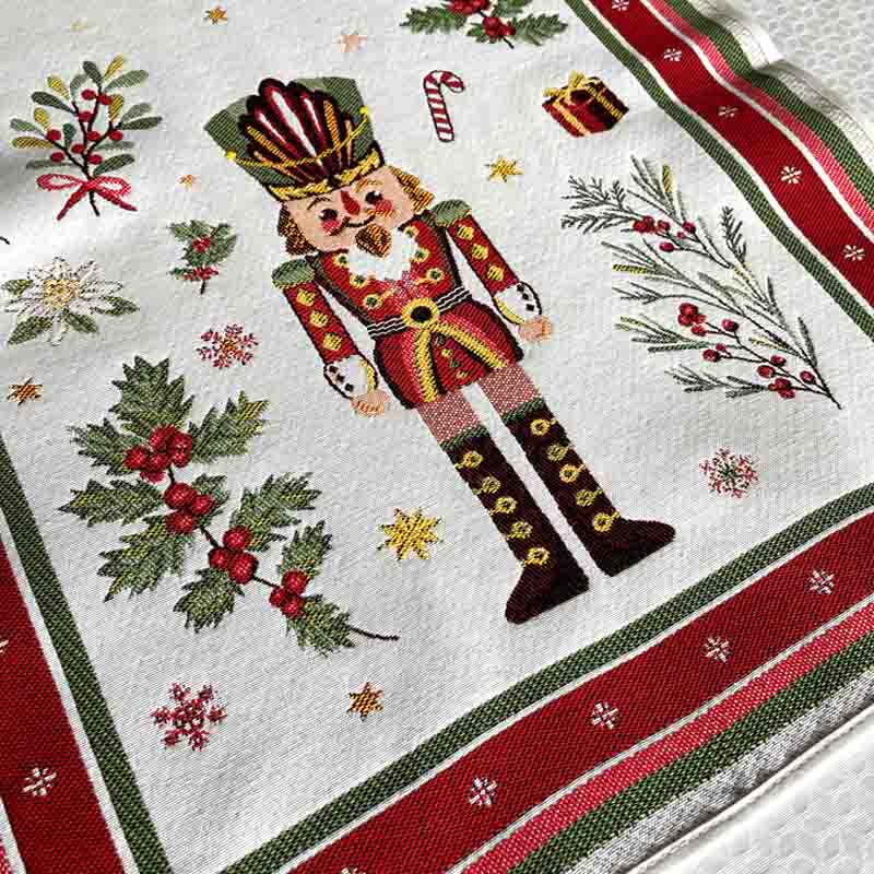 Celebrate the festive season with this beautifully woven jacquard table runner featuring a classic toy soldier motif. Designed and made in Provence, it brings a playful, elegant touch to your Christmas table setting.